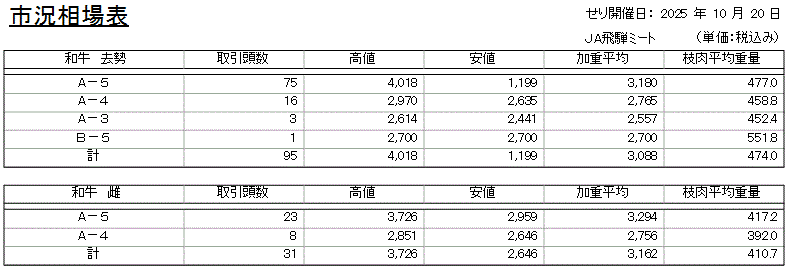 総平均単価3,071円(平均枝肉重量454.1kg)でした。
