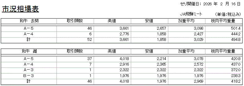 本日の最高取引価格は、和牛雌 BMS12 税込単価4,018円でした。